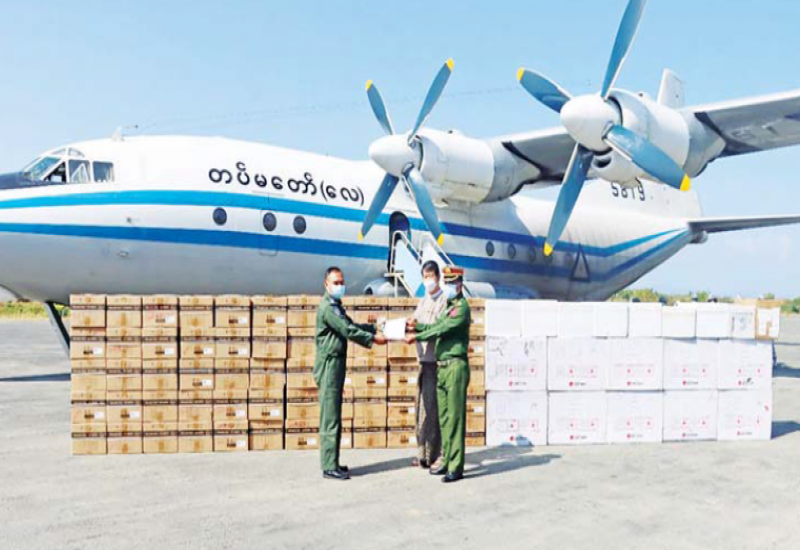 ကိုဗစ်-၁၉ ရောဂါ ဓာတ်ခွဲအတည်ပြု ပိုးတွေ့လူနာများနှင့် သီးသန့်စောင့်ကြည့်ရမည့် သူများအား တပ်မတော်ဆေးရုံများ၊ ပြည်သူ့ဆေးရုံများ၊ ကျန်းမာရေးဌာနများနှင့် ကိုဗစ်စင်တာများတွင် ကျန်းမာရေး စောင့်ရှောက်ပေးခြင်းနှင့် ပြည်နယ်နှင့် တိုင်းဒေသကြီးအသီးသီး၌ ကိုဗစ်-၁၉ ရောဂါကာကွယ်ဆေး ထိုးခြင်းလုပ်ငန်းများကို တပ်မတော်သား ဆရာဝန်များ၊ ကျန်းမာရေးဝန်ထမ်းများ၊ လူမှုရေးအသင်း အဖွဲ့များပူးပေါင်း၍ အင်တိုက်အားတိုက် ဆောင်ရွက်ပေးလျက်ရှိရာ ၎င်းလုပ်ငန်းများတွင် အထောက်အကူဖြစ်စေရန်အတွက် ကာကွယ်ဆေးများကို တိုင်းဒေသကြီးနှင့် ပြည်နယ်အသီးသီးသို့ သတ်မှတ်အအေးလမ်းကြောင်း စံချိန်စံညွှန်းများအတိုင်း တပ်မတော်(လေ)မှ လေယာဉ်များ၊ Cold Chain Delivery Logistics မော်တော်ယာဉ်ကြီးများဖြင့် ပို့ဆောင်ဖြန့်ဖြူးပေးလျက်ရှိသည်။
