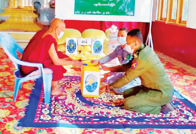 ကိုဗစ်-၁၉ ရောဂါ ကြိုတင်ကာကွယ်ရေးလုပ်ငန်းများ ဆောင်ရွက်နေသည့်ကာလအတွင်း ဆွမ်းကိစ္စရပ်များ အဆင်ပြေစေရန် ရည်ရွယ်၍ ပြည်ထဲရေး ဝန်ကြီးဌာန၊ တပ်ဖွဲ့ဝင်/ဝန်ထမ်း အရာထမ်း၊ အမှုထမ်း မိသားစုများက မြို့နယ်အသီးသီးရှိ ဘုန်းတော်ကြီးကျောင်းများသို့ ဆွမ်းဆန်တော်များ ဆက်ကပ် လှူဒါန်းလျက်ရှိသည်။
