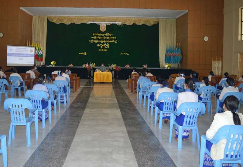 ဘဏ္ဍာရေးဆိုင်ရာ လုပ်ထုံးလုပ်နည်းသင်တန်း အမှတ်စဉ် (၂/၂၀၂၁) သင်တန်းဆင်းပွဲ အခမ်းအနားကို ယနေ့ နံနက် ၉ နာရီခွဲတွင် နေပြည်တော် အားကစားလေ့ကျင့်ရေးစခန်း (Gold Camp) ရှိ (Multipurpose Hall) ၌ ကိုဗစ်-၁၉ ထိန်းချုပ်/ ကာကွယ် စည်းမျဉ်း/ စည်းကမ်းများနှင့်အညီ ကျင်းပသည်။