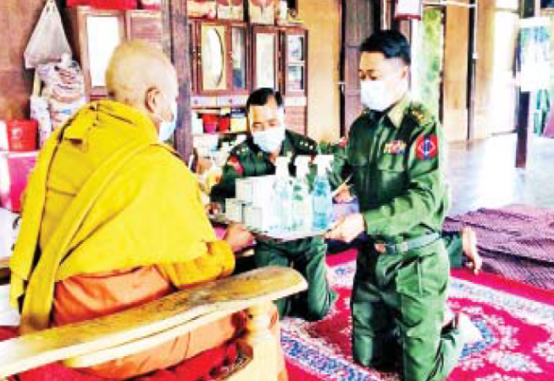 တပ်မတော် (ကြည်း၊ရေ၊လေ) အရာရှိ၊ စစ်သည်၊ အရာထမ်း၊ အမှုထမ်းများနှင့် စေတနာရှင်အလှူရှင်များက မြို့နယ်အသီးသီးရှိ ဘုန်းတော်ကြီးကျောင်းများ၊ သာသနာ့နွယ်ဝင် သီလရှင်ကျောင်းများနှင့် ဘာသာရေးကျောင်းများသို့ ဆွမ်းဆန်တော်၊ ဆီ၊ ဆား၊ ပဲ အမယ်လေးမျိုးနှင့် လှူဖွယ်ပစ္စည်းများ လှူဒါန်းခြင်း၊ နေ့ဆွမ်းများ ဆက်ကပ်လှူဒါန်းခြင်းနှင့် ကျန်းမာရေးစစ်ဆေးပေးခြင်းများကို ဆောင်ရွက်လျက်ရှိသည်။ ။