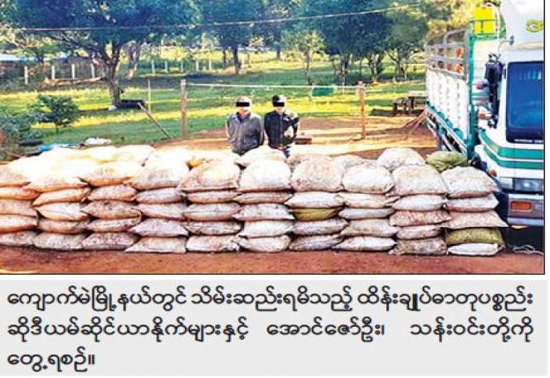 ကျောက်မဲမြို့နယ်နှင့် ပြင်ဦးလွင်မြို့နယ်တို့တွင် ငွေကျပ် ၇၇၄ သိန်းတန်ဖိုးရှိ ထိန်းချုပ် ဓာတုပစ္စည်းဆိုဒီယမ်ဆိုင်ယာနိုက် ၁၄ တန်ကျော် ဖမ်းဆီးရမိခဲ့ကြောင်း မြန်မာနိုင်ငံရဲတပ်ဖွဲ့မှ သိရသည်။