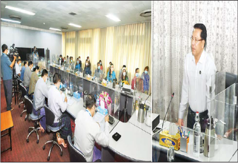 ဖွံ့ဖြိုးတိုးတက်မှု အလားအလာကောင်းတစ်ရပ်၏ ပြယုဂ်-ခေါင်းဆောင်မှု အရင်းအမြစ် တည်ဆောက်ခြင်းဆိုင်ရာ အလုပ်ရုံဆွေးနွေးပွဲ ဖွင့်ပွဲအခမ်းအနားကို ကိုဗစ်-၁၉ ရောဂါ ဆိုင်ရာ ထုတ်ပြန်ထားရှိသော စည်းကမ်းသတ်မှတ်ချက်များနှင့်အညီ ယနေ့နံနက် ၁၀ နာရီက ရုံးအမှတ် (၁၇) စုပေါင်းခန်းမ၌ ကျင်းပသည်။