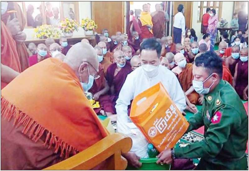 တပ်မတော် (ကြည်း၊ရေ၊လေ) အရာရှိ၊ စစ်သည်၊ အရာထမ်း၊ အမှုထမ်းများနှင့် စေတနာရှင် အလှူရှင်များက မြို့နယ်အသီးသီးရှိ ဘုန်းတော်ကြီး ကျောင်းများ၊ သာသနာ့နွယ်ဝင် သီလရှင် ကျောင်းများနှင့် ဘာသာရေးကျောင်းများသို့ ဆွမ်းဆန်တော်၊ ဆီ၊ ဆား၊ ပဲ အမယ်လေးမျိုးနှင့် လှူဖွယ်ပစ္စည်းများ လှူဒါန်းခြင်း၊ နေ့ဆွမ်းများ ဆက်ကပ်လှူဒါန်း ခြင်းများ ဆောင်ရွက်လျက်ရှိသည်။