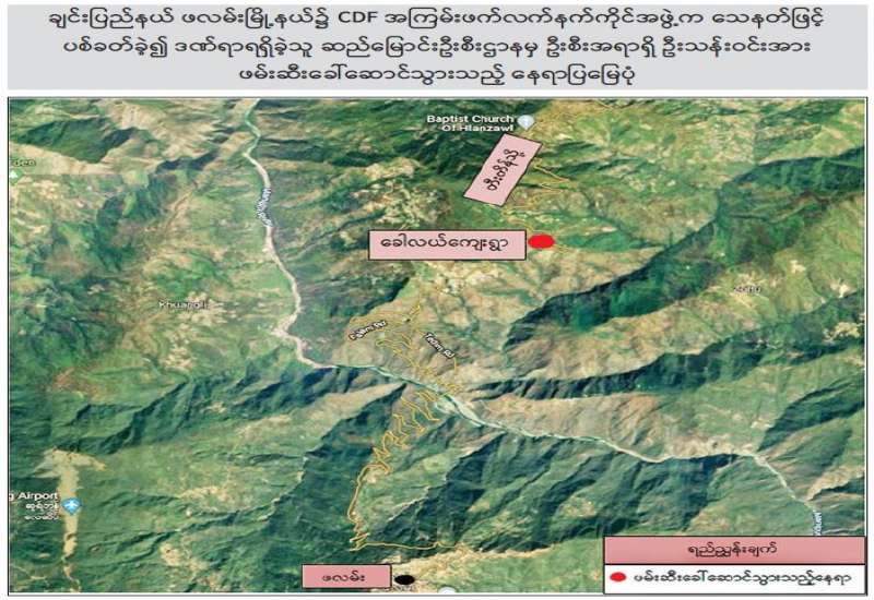 ချင်းပြည်နယ်၊ ဖလမ်းမြို့နယ်၌ CDF အကြမ်းဖက်လက်နက်ကိုင်အဖွဲ့က သေနတ်ဖြင့် ပစ်ခတ် ခဲ့၍ ဒဏ်ရာရရှိခဲ့သူ ဆည်မြောင်းဦးစီးဌာနမှ ဦးစီးအရာရှိ ဦးသန်းဝင်းအား ကလေးမြို့ပြည်သူ့ဆေးရုံသို့ လွှဲပြောင်းကုသရန် လူနာတင်ယာဉ်ဖြင့် သွားရောက်စဉ် အဆိုပါအကြမ်းဖက်အဖွဲ့က လူနာတင်ယာဉ် အား ပစ်ခတ်တားဆီးကာ ဦးစီးအရာရှိအား ဖမ်းဆီးခေါ်ဆောင်သွားခဲ့ကြောင်း သိရသည်။