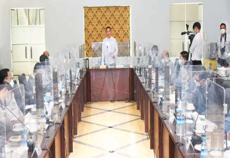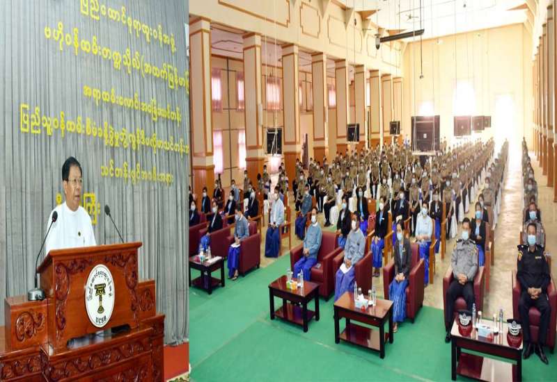 နေပြည်တော် ဒီဇင်ဘာ ၁၃ နိုင်ငံတော်စီမံအုပ်ချုပ်ရေးကောင်စီအစည်းအဝေး (၁၈/၂၀၂၁)ကို ယနေ့မွန်းလွဲပိုင်း တွင် နေပြည်တော်ရှိ နိုင်ငံတော်စီမံအုပ်ချုပ်ရေးကောင်စီဥက္ကဋ္ဌရုံး အစည်းအဝေးခန်းမ၌ ကျင်းပရာ နိုင်ငံတော်စီမံအုပ်ချုပ်ရေးကောင်စီဥက္ကဋ္ဌ၊ နိုင်ငံတော်ဝန်ကြီးချုပ် ဗိုလ်ချုပ်မှူးကြီး မင်းအောင်လှိုင် တက်ရောက်အမှာစကား ပြောကြားသည်။