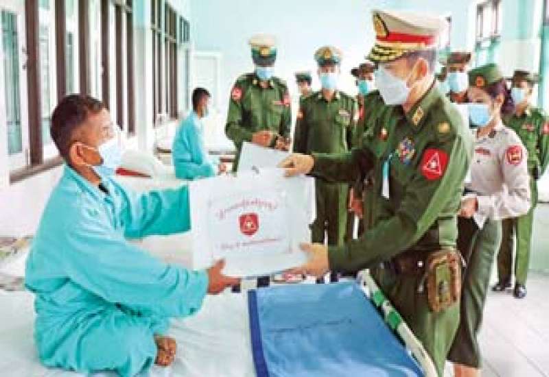ရှမ်းပြည်နယ်(အရှေ့ပိုင်း) မိုင်းဆတ်မြို့ တပ်မတော်ဆေးရုံ၌ တက်ရောက် ကုသမှုခံယူလျက် ရှိသော အရာရှိ၊ စစ်သည်၊ မိသားစုများနှင့် ဒေသခံပြည်သူများအား ယနေ့နံနက်ပိုင်းတွင် တြိဂံဒေသတိုင်းစစ်ဌာနချုပ် တိုင်းမှူး ဗိုလ်မှူးချုပ် မျိုးမင်းထွန်းနှင့် အဖွဲ့ဝင်များက