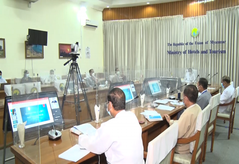 မြန်မာနိုင်ငံခရီးသွားမြှင့်တင်ရေးကို အထောက်အကူပြုရန်အတွက် ပုဂံမြို့ရှိ၊ Bagan Information Training Centre (BITC) တွင် ပြည်တွင်းပြည်ပခရီးသွား ဧည့်သည်များနှင့် ပြည်သူများ ကြည့်ရှု့နိုင်မည့် နေပြည်တော်ကောင်စီနယ်မြေအပါအဝင် တိုင်းဒေသကြီး/ ပြည်နယ်များရှိ ခရီးစဉ် ဒေသများနှင့် ခရီးသွားဆွဲဆောင်မှုများကို ရိုက်ကူးထားသည့် Virtual Reality ပြခန်း ဆောင်ရွက် ထားရှိမှုနှင့်ပတ်သက်၍ ရှင်းလင်းတင်ပြသည့် အစည်းအဝေးကို ယနေ့၊ မွန်းလွဲပိုင်းတွင် ဝန်ကြီးဌာန၊ နီလာအစည်းအဝေးခန်းမ၌ ဗီဒီယိုကွန်ဖရင့်စနစ်ဖြင့် ကျင်းပရာ ဟိုတယ်နှင့် ခရီးသွားလာရေး ဝန်ကြီးဌာန ပြည်ထောင်စုဝန်ကြီး ဒေါက်တာ ဌေးအောင် တက်ရောက်သည်။