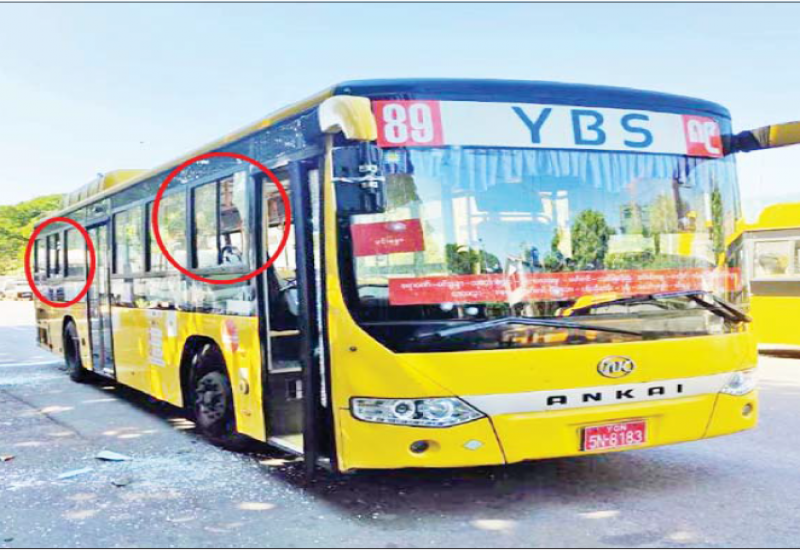 ရန်ကုန်တိုင်းဒေသကြီး၊ ဒဂုံမြို့သစ်(ဆိပ်ကမ်း)မြို့နယ်၌ YBS ခရီးသည်တင်ယာဉ် ၁ စီးအား အကြမ်းဖက်သူ အမျိုးသား ၄ ဦးက သေနတ်ဖြင့် ပစ်ခတ်၍ မီးရှို့ဖျက်ဆီးမှုများ ပြုလုပ်ခဲ့ ကြောင်းသိရသည်။