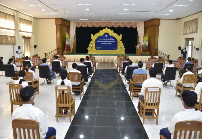သာသနာရေးနှင့်ယဉ်ကျေးမှုဝန်ကြီးဌာန၌ တာဝန်ထမ်းဆောင်မည့် ပြည်ထောင်စုတိုင်းရင်း သားလူငယ်များ စွမ်းရည်ဖွံ့ဖြိုးရေးဒီဂရီကောလိပ် (ရန်ကုန်၊စစ်ကိုင်း) တို့မှ ကျောင်းဆင်း ဝန်ထမ်းများအထက် ဖွင့်လှစ်သည့် ရက်တိုလုပ်ငန်းခွင်သင်တန်းအမှတ်စဉ် (၁/၂၀၂၁) ဖွင့်ပွဲအခမ်း အနားကို ယနေ့နံနက် ၉ နာရီတွင် အဆိုပါဝန်ကြီးဌာန၊ စုပေါင်းအစည်းအဝေးခန်းမ၌ ကိုဗစ်-၁၉ ရောဂါ ကာကွယ်၊ ထိန်းချုပ်ရေးဆိုင်ရာ ညွှန်ကြားချက်များနှင့်အညီ ကျင်းပသည်။