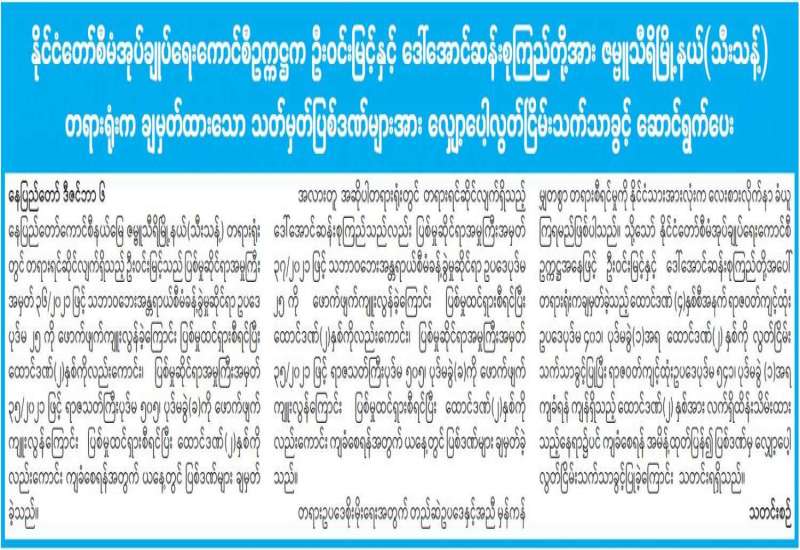 “ဒီမိုကရေစီစနစ်တွင် နိုင်ငံရေးအရ အချင်းချင်းသဘောထားကွဲလွဲမှုများ ရှိနိုင်သော်လည်း အများစု၏ ဆန္ဒသဘောထားကိုလည်း ထည့်သွင်းစဉ်းစား၍ ဆင်ခြင်ဆောက်ရွက်ရန်လိုကြောင်း၊ နိုင်ငံတော်၏ နိုင်ငံရေးလျှောက်လှမ်းမှုတွင် အဆင်ပြေချောမွေ့စေရန်အတွက် မိမိတို့က ဝိုင်းဝန်းဆောင်ရွက်နေခြင်းပင်ဖြစ်ကြောင်း” နိုင်ငံတော်စီမံအုပ်ချုပ်ရေးကောင်စီ ဥက္ကဋ္ဌ၊ နိုင်ငံတော်ဝန်ကြီးချုပ် ဗိုလ်ချုပ်မှူးကြီး မင်းအောင်လှိုင် က ဘာသာပေါင်းစုံ ချစ်ကြည်ညီညွတ်ရေးအဖွဲ့ (ဗဟို)ဥက္ကဋ္ဌနှင့် အလုပ်အမှုဆောင်များအား ဒီဇင်ဘာ ၅ ရက်က တွေ့ဆုံစဉ် ပြောကြားခဲ့သည်။