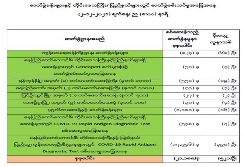 ကျန်းမာရေးဝန်ကြီးဌာနအနေဖြင့် နိုင်ငံအတွင်း ကူးစက်ဖြစ်ပွားနေသော COVID-19 ရောဂါ ကာကွယ်၊ ကုသ၊ ထိန်းချုပ်ရေး လုပ်ငန်းများကို အရှိန်အဟုန်မြှင့် ဆောင်ရွက်လျက်ရှိရာ ရောဂါ ထိန်းချုပ်ရေးလုပ်ငန်းများ အောင်မြင်နိုင်ရေးအတွက် ပြည်သူလူထု အနေဖြင့် ကျန်းမာရေး ဝန်ကြီးဌာနမှ ထုတ်ပြန်ထားသော COVID-19 ရောဂါ ကာကွယ်ထိန်းချုပ်ရေးဆိုင်ရာ စည်းကမ်းများကို စနစ်တကျ လိုက်နာဆောင်ရွက်ရန်လိုအပ်ပြီး COVID-19 ကာကွယ်ဆေး ထိုးနှံမှုခံယူခြင်းအား အထူးဂရုပြု ပူးပေါင်း ဆောင်ရွက်ကြရန် လိုအပ်ပါသည်။