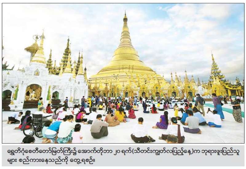 ဗုဒ္ဓဘာသာကလျာဏယုဝအသင်းကြီး (YMBA) မှ ကြီးမှူးကျင်းပသည့် (၁၀၁) ကြိမ်မြောက် အမျိုးသားအောင်ပွဲနေ့ အခမ်းအနားကို ရန်ကုန်တိုင်းဒေသကြီး၊ မရမ်းကုန်းမြို့နယ်ရှိ ဇမ္ဗူသီရိ ဗိမာန်တော်၌ ကျင်းပပြုလုပ်ရာ ရန်ကုန်တိုင်းဒေသကြီး ဝန်ကြီးချုပ် ဦးလှစိုး၊ ရန်ကုန်တိုင်း စစ်ဌာနချုပ်တိုင်းမှူး ဗိုလ်ချုပ် ညွန့်ဝင်းဆွေနှင့် ဌာနဆိုင်ရာတာဝန်ရှိသူများ၊ ဖိတ်ကြား ထားသူများ တက်ရောက်ကြ သည်။