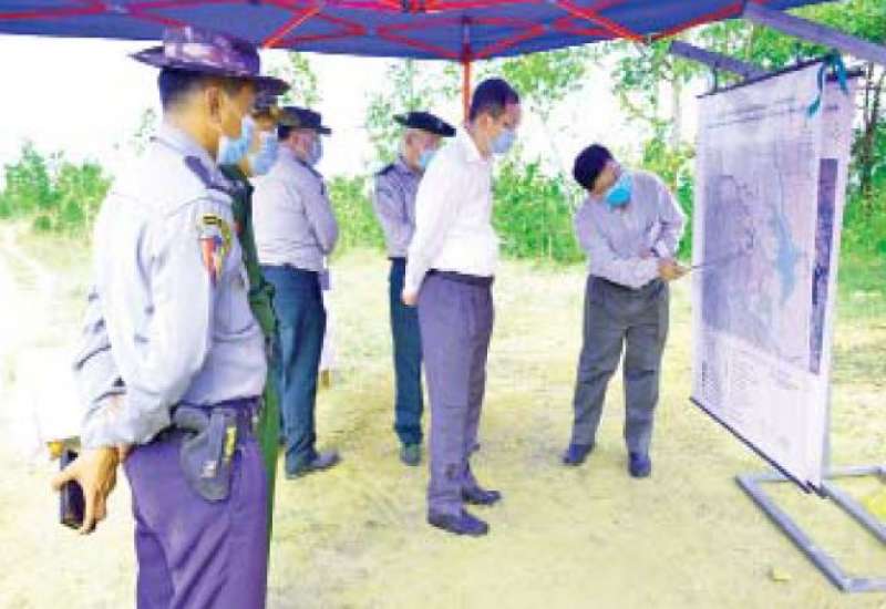 သယံဇာတနှင့် သဘာဝပတ်ဝန်းကျင် ထိန်းသိမ်းရေးဝန်ကြီးဌာန ပြည်ထောင်စုဝန်ကြီး ဦးခင်မောင်ရီ သည် ယနေ့ မွန်းလွဲပိုင်းတွင် ပြည်ထောင်စု နယ်မြေ (နေပြည်တော်) တပ်ကုန်းမြို့ နယ်ရှိ ဆင်သေဆည် ရေဝေရေလဲ ဧရိယာသို့ သွားရောက်စစ်ဆေးရာ တာဝန်ရှိသူများက လုပ်ငန်းအစီ အမံများကို ရှင်းလင်းတင်ပြသည်။