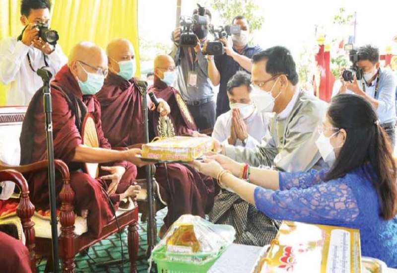 ကျန်းမာရေးဝန်ကြီးဌာနသည် ကိုဗစ်-၁၉ ရောဂါ ကာကွယ်ဆေးထိုးနှံခြင်းကို ဦးတည် အုပ်စုများနှင့် ဦးစားပေးအစီအစဉ်များအလိုက် အရှိန်အဟုန်မြှင့်တင်ဆောင်ရွက် လျက်ရှိရာ သီတင်းကျွတ်ရက်မြတ်ကာလအတွင်း သာသနာ့နွယ်ဝင် ဦးတည်အုပ်စုဖြစ်သည့် ဆရာ တော်/ သံဃာတော်များ၊ သီလရှင်များနှင့် ကပ္ပိယများအား ကိုဗစ်-၁၉ ရောဂါ ကာကွယ်ဆေး ထိုးနှံပေး နေမှုများကို အရှိန်အဟုန်မပျက်ဆက်လက်ဆောင်ရွက်လျက်ရှိသည်။