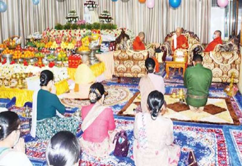 ရွှေတိဂုံစေတီတော် ဘဏ္ဍာတော်ထိန်းဂေါပကအဖွဲ့က ကြီးမှူးကျင်းပသည့် ၁၃၈၃ ခုနှစ် သီတင်းကျွတ်လပြည့် အဘိဓမ္မာအခါတော်နေ့အရုဏ်ဆွမ်းတော်ကြီး ဆက်ကပ် လှူဒါန်းပွဲ အခမ်းအနားကို ယနေ့ နံနက်ပိုင်းတွင် ရွှေတိဂုံစေတီတော်တောင်ဘက်မုခ်ရှိ ဧည့်ခံတန်ဆောင်း ၌ ကျင်းပသည်။