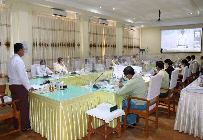ကိုဗစ်-၁၉ ရောဂါ ကာကွယ်ထိန်းချုပ်ရေး လုပ်ငန်းညှိနှိုင်းအစည်းအဝေးကို ယမန်နေ့ မွန်းလွဲ ၁ နာရီက ကျန်းမာရေးဝန်ကြီးဌာန အစည်းအဝေးခန်းမ၌ ဗွီဒီယိုကွန်ဖရင့်စနစ်ဖြင့် ကျင်းပသည်။