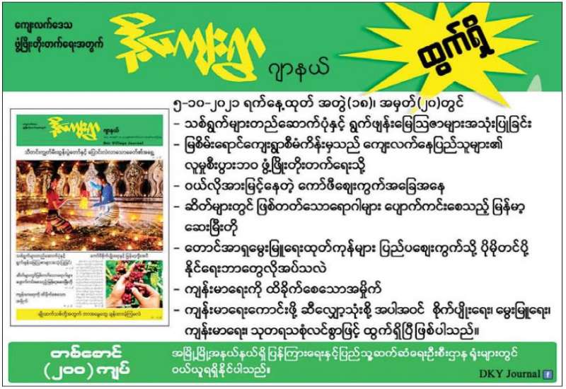 ဒေသတွင်းစားနပ်ရိက္ခာဖူလုံရေးနှင့် ပြည်သူများ၏စားသောက်ရေးကို အထောက်အကူဖြစ်စေရန် အတွက် ယနေ့တွင် ရှမ်းပြည်နယ်ဝန်ကြီးချုပ် ဒေါက်တာကျော်ထွန်း၊ တြိဂံဒေသတိုင်းစစ်ဌာနချုပ် တိုင်းမှူး ဗိုလ်မှူးချုပ် မျိုးမင်းထွန်းနှင့်အဖွဲ့ဝင်များသည် ရှမ်းပြည်နယ်(အရှေ့ပိုင်း) မိုင်းယန်းမြို့နယ် ယမ်းခိုင်ကျေးရွာရှိ မိုးစပါးစံပြစိုက်ကွင်းနှင့် သဘာဝမြေဩဇာ (အီးအမ်ဘိုကာရှီ) မြေဆွေးပြုလုပ်ထားရှိမှုတို့ကို သွားရောက်ကြည့်ရှု၍ (ယာပုံ) တာဝန်ရှိသူများနှင့် တွေ့ဆုံကာ ကုန်ထုတ်လုပ်မှုလုပ်ငန်းများ ရာနှုန်းပြည့် ဆောင်ရွက်နိုင်ရေးနှင့် လိုအပ်သည်များ ပေါင်းစပ်ညှိနှိုင်း ဆောင်ရွက်ပေးကြောင်း သတင်းရရှိသည်။