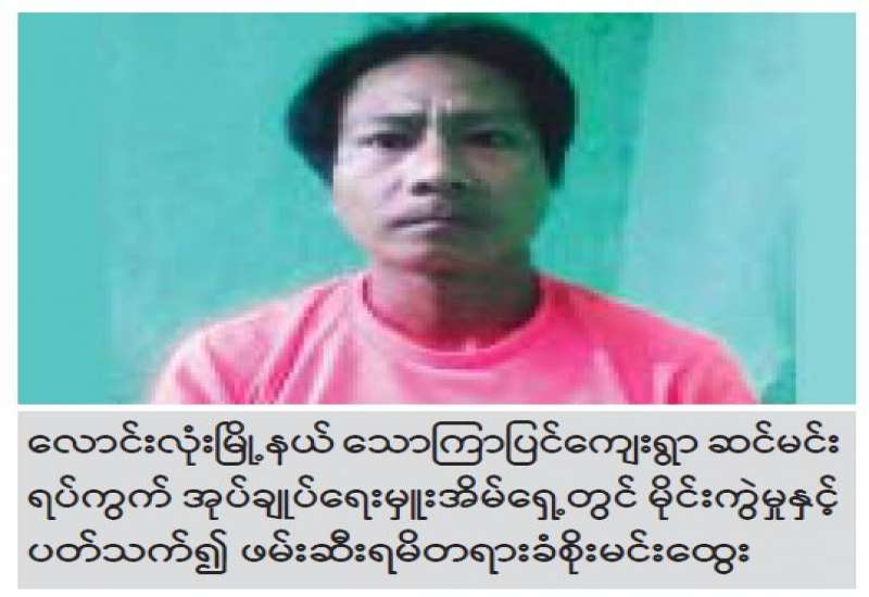 တိုင်းရင်သားလက်နက်ကိုင် နယ်မြေများအတွင်း အကြမ်းဖက်သင်တန်း တက်ရောက်ခဲ့သူများ ပြန်လည်ရောက်ရှိနေကြောင်း တာဝန်သိပြည်သူများ၏ သတင်းပေးပို့ချက်အရ ဖမ်းဆီးနိုင်ရေး ဆောင်ရွက်ခဲ့ရာ စက်တင်ဘာလ ၂၃ ရက် ညပိုင်းတွင် လုံခြုံရေးတပ်ဖွဲ့ဝင်များမှ မင်္ဂလာ တောင်ညွှန့်မြို့နယ်၊ လွတ်လပ်ရေးရပ်ကွက်၌ KIA တပ်မဟာ(၈)နယ်မြေအတွင်း စစ်သင်တန်း တက်ရောက်ပြီး ပြန်လည်ရောက်ရှိလာသည့် ဘိုဘိုလင်း (၁၈)နှစ်အား ဖမ်းဆီးရမိခဲ့သည်။