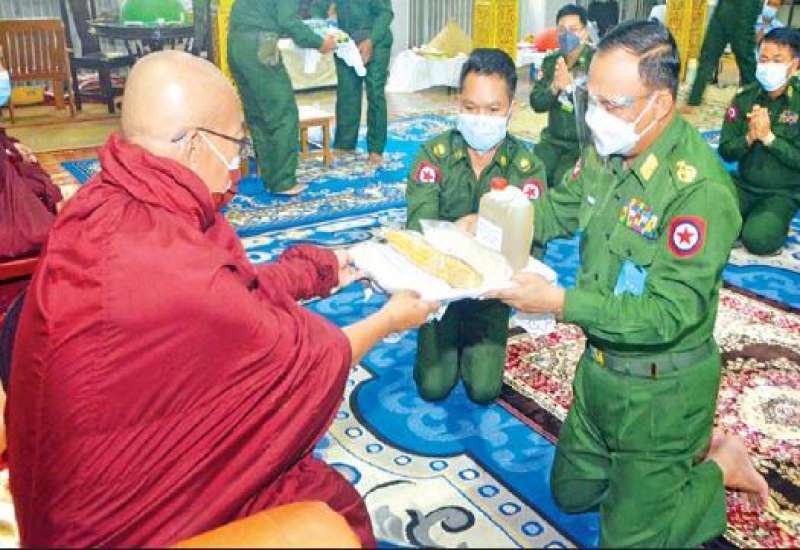 တပ်မတော်(ကြည်း၊ရေ၊လေ) အရာရှိ၊ စစ်သည်၊ အရာထမ်း၊ အမှုထမ်းများနှင့် စေတနာရှင်အလှူရှင်များက ကိုဗစ်-၁၉ ရောဂါ ကြိုတင်ကာကွယ်ရေးလုပ်ငန်းများ ဆောင်ရွက်နေသည့် ကာလအတွင်း ဆွမ်းကိစ္စရပ်များ အဆင်ပြေစေရန်ရည်ရွယ်၍ မြို့နယ်အသီးသီးရှိ ဘုန်းတော်ကြီးကျောင်းများ၊ သာသနာနွယ်ဝင် သီလရှင်ကျောင်း များနှင့် ဘာသာရေးကျောင်းများတွင် ဆွမ်းဆန်တော်၊ ဆီ၊ ဆား၊ ပဲ အမယ်(၄)မျိုးနှင့် လှူဖွယ်ပစ္စည်းများလှူဒါန်းခြင်း၊ နေ့ဆွမ်းများ ဆက်ကပ်လှူဒါန်းခြင်းနှင့် ကျန်းမာရေး စစ်ဆေးပေးခြင်းများကို ဆောင်ရွက်လျက်ရှိရာ ယနေ့နံနက်ပိုင်းတွင် နေပြည်တော် ကောင်စီနယ်မြေ၊ ပျဉ်းမနားမြို့နယ်အတွင်းရှိ ပရိယတ္တိစာသင်တိုက်များ၊