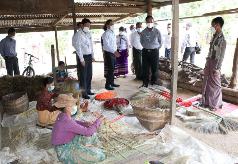 သမဝါယမနှင့် ကျေးလက်ဖွံ့ဖြိုးရေးဝန်ကြီးဌာန ပြည်ထောင်စုဝန်ကြီး ဦးလှမိုးသည် ယနေ့ နံနက်ပိုင်းတွင် နေပြည်တော်ကောင်စီနယ်မြေ ပုဗ္ဗသီရိမြို့နယ်နှင့် တပ်ကုန်းမြို့နယ်အတွင်း ဒေသဖွံ့ဖြိုးရေးလုပ်ငန်းများ အကောင်အထည်ဖော် ဆောင်ရွက်ပြီးစီးမှု အခြေအနေများ၊ ကျေးလက်နေတောင်သူများ၏ လူမှုစီးပွားဘဝမြင့်မားလာစေရန် ဒေသထွက်ကုန် မျှစ်ခြောက် ထုတ်လုပ်မှု၊ ဝါးကုန်ကြမ်းကို တန်ဖိုးမြင့်ထုတ်ကုန် လက်မှုထည်အဖြစ် အဆင့်မြှင့်တင် ထုတ်လုပ်နိုင်ရန် ဆောင်ရွက်နေမှုနှင့် ဝိုင်ချက်စက်ရုံတို့ကို ကြည့်ရှုစစ်ဆေးသည်။