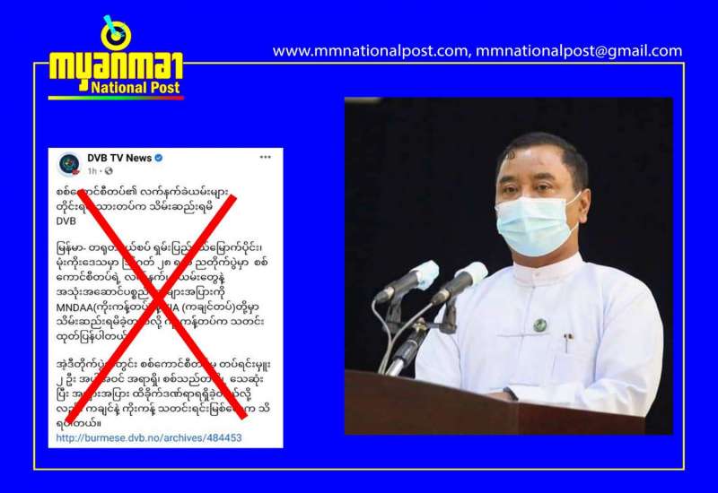 အကြမ်းဖက်အားပေးသတင်းဌာန DVB က သတင်းမှားများဖော်ပြခြင်းနဲ့ ပတ်သက်၍ မြန်မာနေရှင်နယ်ပို့စ်က ဆက်သွယ်မေးမြန်းရာ အဆိုပါ သတင်းဌာနများသည် သတင်းစာ ရှင်းလင်းပွဲတွင် ပြောခဲ့သလိုပါပဲ။ PDF တွေကို စိတ်ဓာတ်တက်ကြွအောင် လုပ်ပေးပြီး သေတွင်းထဲကို ပို့နေတာပါဟု ပြန်ကြားရေးဒုဝန်ကြီး ဗိုလ်ချုပ်ဇော်မင်းထွန်း ဖြေကြားထား ပါတယ်။