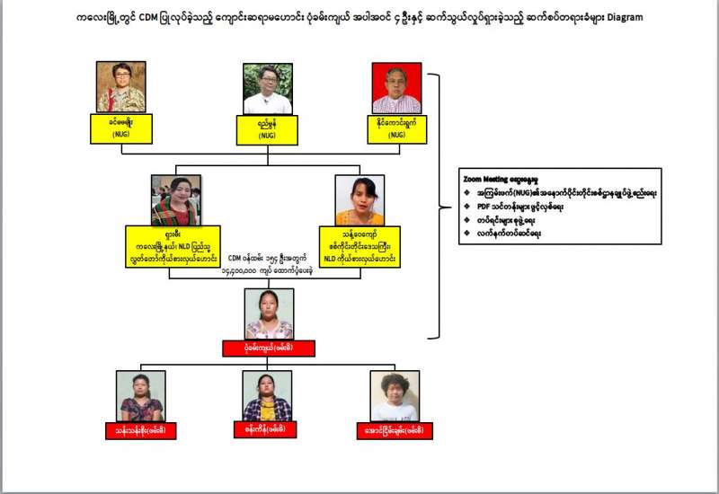တာဝန်သိပြည်သူများ၏ သတင်းပေးပို့ချက်အရ နိုင်ငံတော်တည်ငြိမ်အေးချမ်းရေးကို ပျက်ပြားရေး ဆောင်ရွက်နေသူ ရာဇသတ်ကြီး ပုဒ်မ-၅၀၅(က)ဖြင့် အမှုဖွင့်လှစ်ထားပြီး ထွက်ပြေးတိမ်းရှောင်လျက် ရှိသော မိုးညှင်းမြို့နယ် NLD ပါတီဝင် သက်ထားနှောင်း(ခ)သက်သူဇာခိုင်ကို ဩဂုတ် ၄ရက်တွင် မိုးညှင်း မြို့နယ် နန်းမားမြို့ ညောင်ကုန်းရပ်ကွက် အိမ်အမှတ်(၁၄)ရှိ သစ္စာရှင်အထည်ဆိုင်၌ လုံခြုံရေး တပ်ဖွဲ့ဝင်များက ဖမ်းဆီးရမိခဲ့သည်။