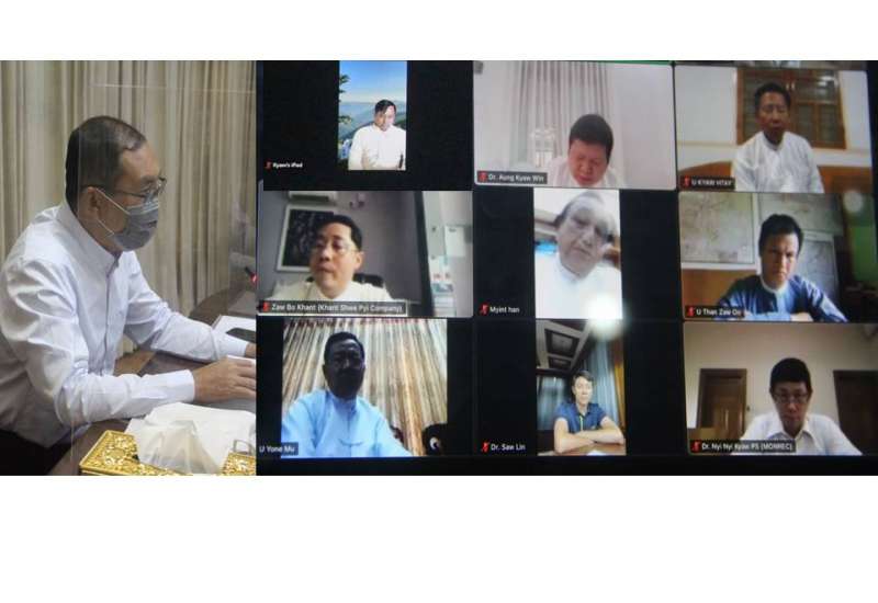 ကိုဗစ်-၁၉ ကြောင့် ဖြစ်ပေါ်လာသည့် စီးပွားရေးသက်ရောက်မှုများအပေါ် ကုစားရေး လုပ်ငန်းကော်မတီက ဦးဆောင်ရေးဆွဲခဲ့သော မြန်မာနိုင်ငံစီးပွားရေး ပြန်လည် ဦးမော့စေရေး စီမံချက် (Myanmar Economic Recovery Plan- MERP) အပြီးသတ်ညှိနှိုင်းသည့် အစည်းအဝေးကို ယနေ့ နံနက်ပိုင်းတွင် ရင်းနှီးမြှုပ်နှံမှုနှင့် နိုင်ငံခြားစီးပွားဆက်သွယ်ရေးဝန်ကြီးဌာန၊ ရုံးအမှတ် (၁) ၌ Virtual စနစ်ဖြင့် ကျင်းပသည်။