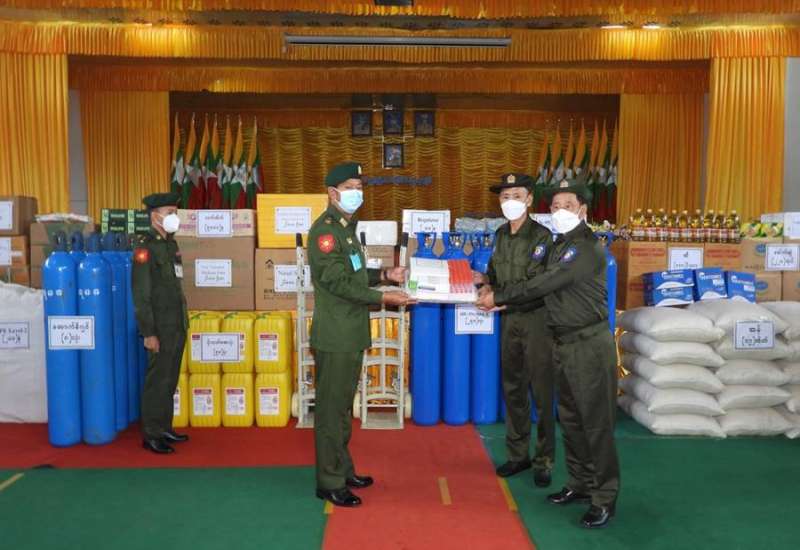 ကိုဗစ်-၁၉ ရောဂါ ဓာတ်ခွဲအတည်ပြု ပိုးတွေ့လူနာများနှင့် သီးသန့်စောင့် ကြည့်ရမည့်သူများကို ကုသရေးလုပ်ငန်းများ ဆောင်ရွက်ရာတွင် အောက်ဆီဂျင် လိုအပ်ချက်များကို တစ်ဖက် တစ်လမ်းမှ အထောက်အကူပြုစေရန်အတွက် တပ်မတော်နှင့် အလှူရှင်များက အောက်ဆီဂျင် အိုးများ၊ ရောဂါကာကွယ်ရေး အထောက် အကူပြုပစ္စည်းများနှင့် အာဟာရဖြည့် စားသောက် ဖွယ်ရာများကို တိုင်းဒေသကြီးနှင့် ပြည်နယ်အသီးသီးရှိ ပြည်သူ့ဆေးရုံများ၊ တပ်မတော် ဆေးရုံများ၊ ကျန်းမာရေးဌာနများ၊ ကိုဗစ်စင်တာများနှင့် လူမှုကူညီရေး အသင်းအဖွဲ့များသို့ ပေးပို့လှူဒါန်းလျက်ရှိသည်။
