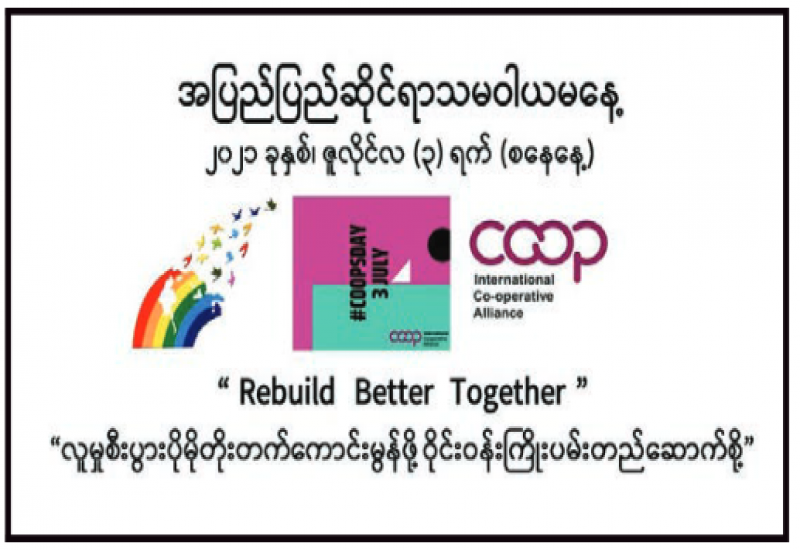 ယနေ့သည် အပြည်ပြည်ဆိုင်ရာ သမဝါယမနေ့ဖြစ်သည်။ ၁၉၂၃ ခုနှစ်မှစ၍ နှစ်စဉ်ကျင်းပလာခဲ့သည့် အပြည်ပြည်ဆိုင်ရာ သမဝါယမ နေ့သည် ယခုနှစ်တွင် ရာပြည့်အကြိုကာလသို့ ရောက်ရှိခဲ့ပြီဖြစ် သည်။ လူမှုစီးပွားဘဝများ တိုးတက်ကောင်းမွန်ရေးအတွက် ဆန္ဒ တူညီသူများ အတူတကွ ပူးပေါင်းဆောင်ရွက်ကြသည့် သမဝါယမ အဖွဲ့အစည်းများသည် “အများအကျိုးအတွက် တစ်ဦးချင်းစီက၊ တစ်ဦးချင်းစီအကျိုးအတွက် အများက” အပြန်အလှန်အကျိုးပြုရေး ကို ဦးတည်ရည်ရွယ်ထားသည်။ ကိုဗစ်-၁၉ ကပ်ရောဂါ တစ်ကမ္ဘာလုံး တွင် ကျရောက်နေသည့်ယခုနှစ် အပြည်ပြည်ဆိုင်ရာသမဝါယမနေ့၏ ဆောင်ပုဒ်မှာ " Rebuild Better Together" “လူမှုစီးပွားပိုမို တိုးတက်ကောင်းမွန်ဖို့၊ ဝိုင်းဝန်းကြိုးပမ်း တည်ဆောက်စို့” ဟူ၍ ဖြစ်သည်။