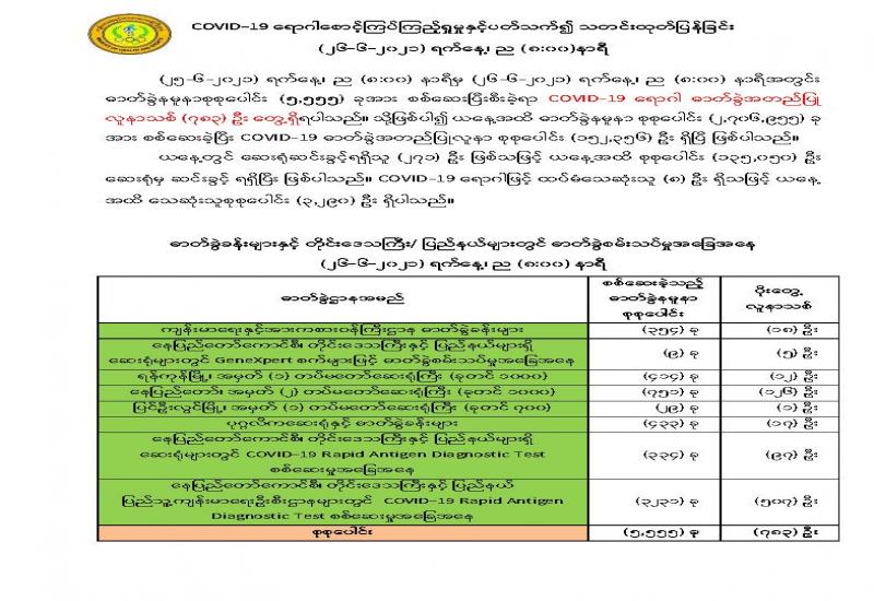 ကိုဗစ်-၁၉ ရောဂါ ဓာတ်ခွဲအတည်ပြု လူနာ တွေ့ရှိမှု ရာခိုင်နှုန်း သိသိသာသာ မြင့်တက် လာနေပြီဖြစ်ရာ ကမ္ဘာ့ကပ်ရောဂါ မိမိတို့ထံ ကူးစက်မလာစေရေးအတွက် ကိုယ့်ကိုယ်ကိုယ် ကာကွယ်ရေး အထူး ဂရုပြုကြရန် တိုက်တွန်းနှိုးဆော်လိုသည်။ ဓာတ်ခွဲအတည်ပြုလူနာ များအတွင်း မျိုးရိုးဗီဇကွဲ ကိုဗစ်-၁၉ ရောဂါပိုးများ ကူးစက်ခံထား ရမှုများကိုပါ တွေ့ရှိခဲ့ရာ ယင်းတို့၏ ရောဂါပိုးကူးစက်နိုင်မှုနှင့် ထပ်မံ ကူးစက်ပျံ့နှံ့နိုင်မှု၊ ဆေးရုံတက်ရောက်နိုင်ခြေနှင့် သေဆုံးနိုင်ခြေတို့ မှာ ပိုမို၍ မြင့်မားပြင်းထန်ခြင်းကြောင့် ကြိုတင်ကာကွယ်မှုက ပို၍ အရေးပါလျက်ရှိသည်။