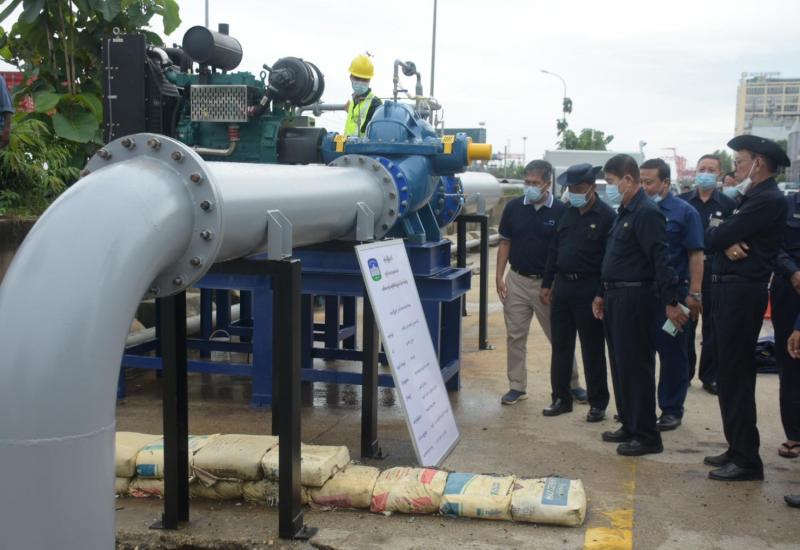 ရန်ကုန်မြို့တော် စည်ပင်သာယာရေးကော်မတီဥက္ကဋ္ဌ(မြို့တော်ဝန်) ဦးဗိုလ်ဌေးသည် ယနေ့ ညနေ ၃ နာရီခွဲက လမ်းမတော်မြို့နယ် မော်တင်ယာယီ ဈေးရပ်ကွက် ကမ်းနားလမ်းရှိ ရွာသစ်ချောင်းရေထိန်းတံခါးမြစ်ထွက်ပေါက်တွင် ၁ နာရီ ရေဂါလန် ၁၉၀,၀၀၀ စုပ်ထုတ်နိုင်သည့် မြင်းကောင်ရေ ၆၀ အားရှိသည့် 40 KW ရေစုပ်စက်ဖြင့် ရေထိန်းတံခါးပိတ်၍