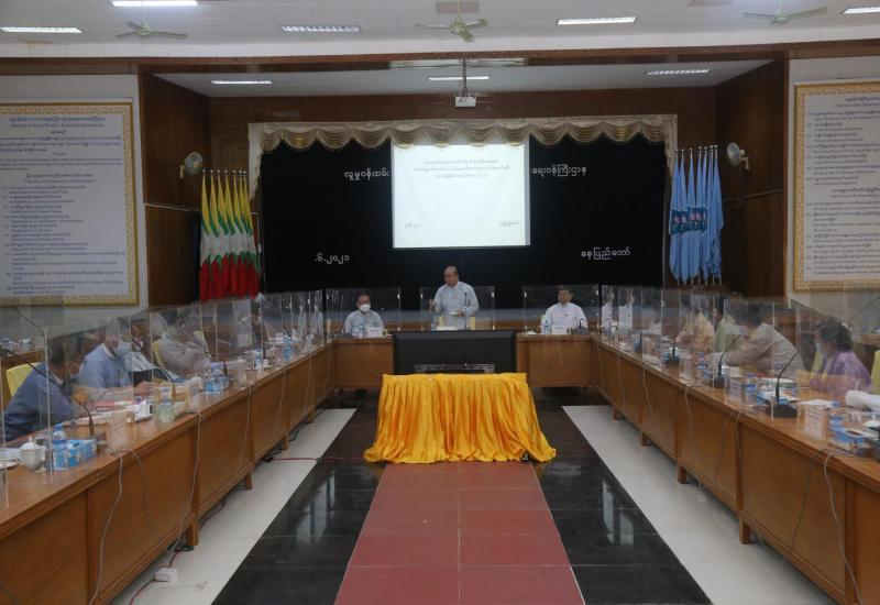 ပြည်တွင်းနေရပ်စွန့်ခွာသူများ ပြန်လည်နေရာချထားရေးနှင့် ယာယီခိုလှုံရာစခန်းများ ပိတ်သိမ်းရေး ဆိုင်ရာ အမျိုးသားအဆင့်ကော်မတီ၏ လုပ်ငန်းကော်မတီတစ်ခုဖြစ်သော လူသားချင်းစာနာ ထောက်ထားမှု အကူအညီပေးရေးနှင့် အသက်မွေးဝမ်းကျောင်းလုပ်ငန်းများ ဖော်ဆောင်ရေး လုပ်ငန်းကော်မတီ၏ ပထမအကြိမ် လုပ်ငန်းညှိနှိုင်းအစည်းအဝေးကို ယနေ့မွန်းလွဲပိုင်းတွင် လူမှုဝန်ထမ်း၊ ကယ်ဆယ်ရေးနှင့် ပြန်လည်နေရာချထားရေးဝန်ကြီးဌာန စုပေါင်းအစည်းအဝေး ခန်းမ၌ ကျင်းပသည်။