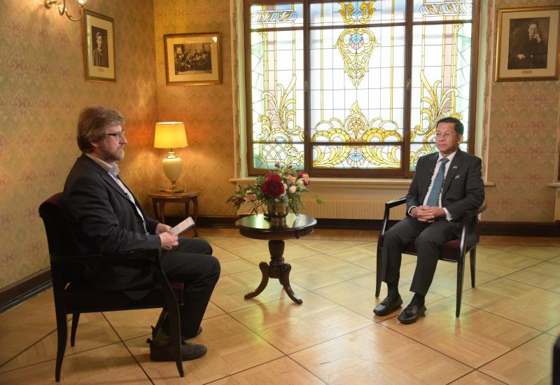 ရုရှားဖက်ဒရေးရှင်းနိုင်ငံ၌ ရောက်ရှိနေသည့် နိုင်ငံတော်စီမံအုပ်ချုပ်ရေးကောင်စီ ဥက္ကဋ္ဌ၊ တပ်မတော်ကာကွယ်ရေးဦးစီးချုပ် ဗိုလ်ချုပ်မှူးကြီး မင်းအောင်လှိုင် သည် ယနေ့နံနက်ပိုင်းတွင် ရုရှားဖက်ဒရေးရှင်းနိုင်ငံ၊ Russia 24 ရုပ်သံ သတင်းဌာန၊ International Review အစီအစဉ်မှ ပင်တိုင်သတင်းတင်ဆက်သူ Mr. Fedor Lukyanov အား ခေတ္တတည်းခိုလျက်ရှိသည့် Metropol Hotel ၌ တွေ့ဆုံ၍ သိရှိလိုသည့် မေးမြန်းမှုများကို လက်ခံဖြေကြားသည်။