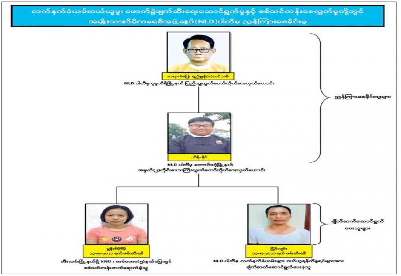 အမျိုးသားဒီမိုကရေစီအဖွဲ့ချုပ်(NLD)ပါတီ၏ စေခိုင်းချက်အရ ဘီးလင်းမြို့နယ်ရှိ KNU တပ်မဟာ(၅) နယ်မြေတွင် စစ်သင်တန်းနှင့် ဖောက်ခွဲဖျက်ဆီးရေးသင်တန်း တက်ရောက်ခဲ့ပြီး လက်နက်ခဲယမ်း ဝယ်ယူရေး ကိစ္စရပ်များအား ချိတ်ဆက်ဆောင်ရွက်ပေးခဲ့သည့် ငြိမ်းချမ်း(ခ)ခိုင်ကိုမွန်နှင့် ရွှန်းစိမ့်စိမ့် တို့အား မရမ်းကုန်းမြို့နယ်တွင် ၁၃-၅-၂၀၂၁ ရက်တွင် ဖမ်းဆီးရမိခဲ့သည်။