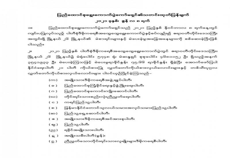 ပြည်ထောင်စုရွေးကောက်ပွဲကော်မရှင်၏သတင်းထုတ်ပြန်ချက် ၂၀၂၁ ခုနှစ်၊ ဇွန် လ ၈ ရက်