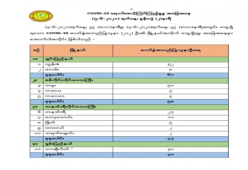 ရှမ်းပြည်နယ်(အရှေ့ပိုင်း)၊ ကျိုင်းတုံမြို့၊ ရခိုင်ပြည်နယ်၊ စစ်တွေမြို့နှင့် မန္တလေး တိုင်းဒေသကြီး၊ မန္တလေးမြို့တို့၌ သာသနာရေးဦးစီးဌာနမှ ကျင်းပလျက်ရှိသော အစိုးရဓမ္မာစရိယစာမေးပွဲဖြေဆိုနေကြသည့် သံဃာတော်များ၊ သာသနာ့နွယ်ဝင် သီလရှင်များနှင့် စာမေးပွဲကြီးကြပ်ဆရာတော်ကြီးများအား ဇွန် ၄ ရက်နှင့် ယနေ့ တို့တွင် သက်ဆိုင်ရာ တိုင်းစစ်ဌာနချုပ်များမှ တိုင်းမှူးများ၊ သာသနာရေးနှင့် ယဉ်ကျေးမှုဝန်ကြီးဌာနမှ တာဝန်ရှိသူများက သွားရောက်ဖူးမြော်ကြည်ညိုကြကာ နဝကမ္မအလှူငွေနှင့် လှူဖွယ်ပစ္စည်းများ ဆက်ကပ်လှူဒါန်းပြီး နေ့ဆွမ်းများ ဆက်ကပ် လှူဒါန်းခဲ့ကြကြောင်း သတင်းရရှိသည်။