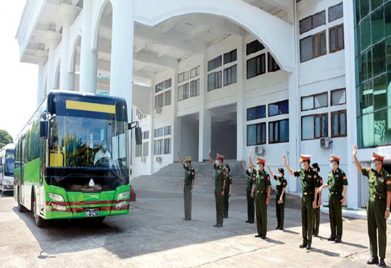 COVID-19 ရောဂါ ကာကွယ်၊ ထိန်းချုပ်ကုသရေးလုပ်ငန်းများ အရှိန်အ အဟုန်မြှင့်ဆောင်ရွက်လျက်ရှိပြီး ရန်ကုန်တိုင်းစစ်ဌာနချုပ်နယ်မြေအတွင်းရှိ ကုသရေးဆေးရုံများ၌ ကျန်းမာရေးဝန်ထမ်းများ မလုံလောက်မှုကြောင့် ထပ်မံ ဖွင့်လှစ်ထားရှိသည့် ရန်ကုန်တိုင်းဒေသကြီး၊ လှည်းကူးမြို့နယ် COVID-19 ရောဂါကုသရေးဌာန(ဖောင်ကြီး)တွင် တပ်မတော်မှ ပါဝင်ကူညီဆောင်ရွက်ရန် အတွက် ဆေးဝန်ထမ်းတပ်ဖွဲ့ဝင် ပါရဂူများ၊ ဆေးမှူးများ၊ သူနာပြုများ ပါဝင်သောအဖွဲ့က သွားရောက်တာဝန်ထမ်းဆောင်လျက်ရှိသည်။