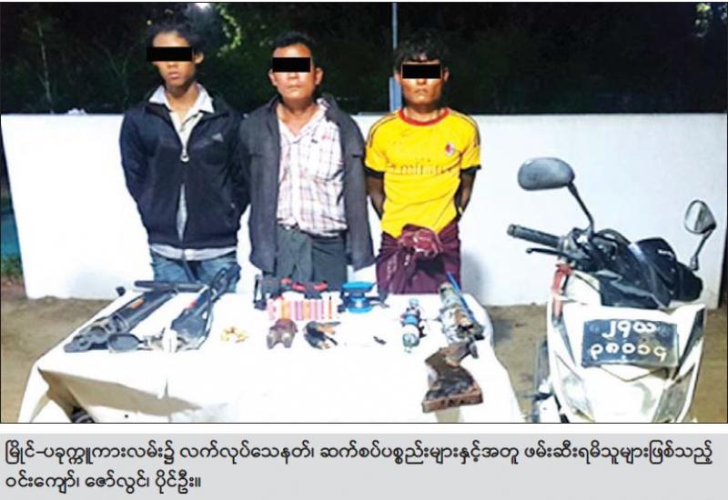 စစ်ကိုင်းတိုင်းဒေသကြီး၊ ချောင်းဦးမြို့နယ်၌ နိုင်ငံတော်ဆန့်ကျင်ရေး အဖျက်အမှောင့် လုပ်ရပ်များ လုပ်ဆောင်ရန်ပြင်ဆင်နေသည့် အကြမ်းဖက်အဖွဲ့ကို သွားရောက်ရှင်းလင်းစဉ် အမျိုးသား ၂ ဦးကို တူမီးသေနတ်၊ လက်လုပ်သေနတ်၊ ဂက်စ်သေနတ်၊ ပြောင်းချောသေနတ်များ၊ လက်လုပ်မိုင်း၊ လက်လုပ်ဗုံးအများအပြားနှင့်အတူ ဖမ်းဆီးရမိခဲ့ကြောင်း သိရသည်။