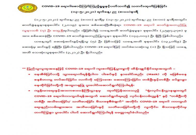 မန္တလေးတိုင်းဒေသကြီး မြင်းခြံမြို့နယ် တလုပ်မြို့ကျေးရွာ၌ ဆူပူအကြမ်းဖက် ဆန္ဒပြသူများ အား ဖြိုခွဲထိန်းသိမ်းစဉ် လုံခြုံရေးတပ်ဖွဲ့ဝင် ခြောက်ဦး ထိခိုက်ဒဏ်ရာရရှိကာ ဆူပူအကြမ်းဖက် သူအမျိုးသား ငါးဦးနှင့် အမျိုးသမီး တစ်ဦးတို့ကို ဆူပူအကြမ်းဖက် ရာတွင် အသုံးပြုသည့် လက်နက်/ ခဲယမ်း၊ ဆက်စပ်ပစ္စည်းများနှင့်အတူ ဖမ်းဆီးရမိခဲ့ပြီး ထိရောက်စွာ အရေးယူနိုင်ရေး ဆောင်ရွက် လျက်ရှိသည်။