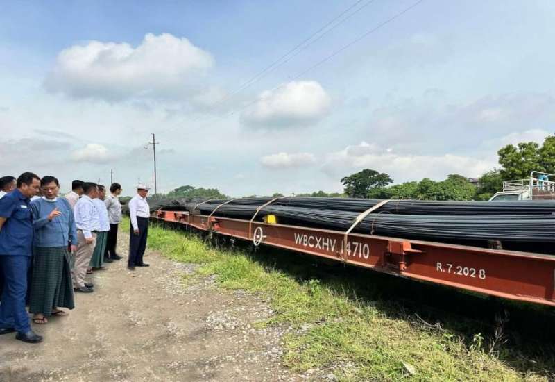 ငလျင်ဘေးဒဏ်ခံခဲ့ရသော ဒေသများရှိ ပြန်လည်ထူထောင်ရေးနှင့် တည်ဆောက်ရေးလုပ်ငန်းများအတွက် လိုအပ်လျက်ရှိသော HRB 500 အမျိုးအစား သံချောင်းလုံးများအား ရန်ကုန်မြို့မှ မန္တလေးမြို့သို့ အထူးကုန်ရထားဖြင့် ပို့ဆောင်ရောက်ရှိလာခဲ့ကြောင်း သိရှိရသည်။