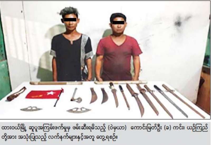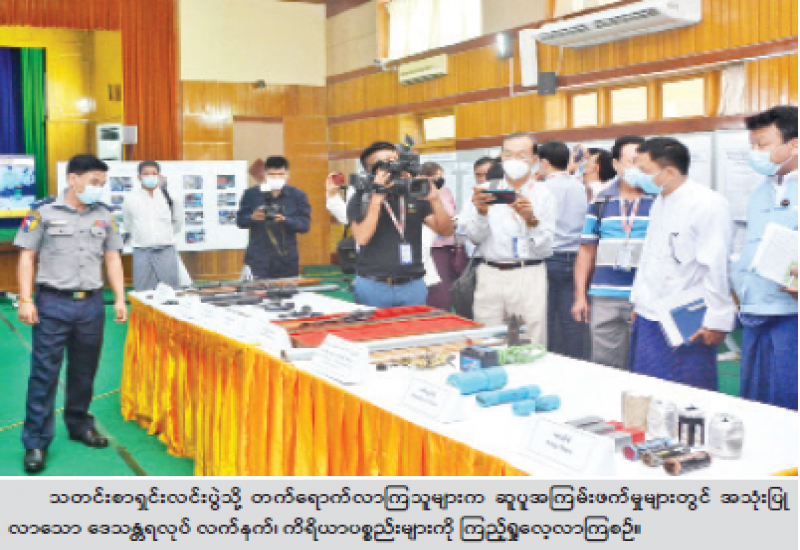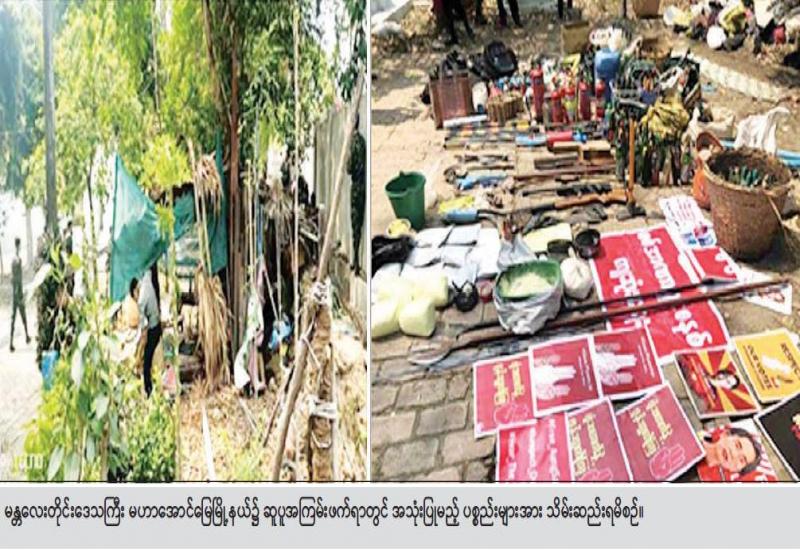 ဆူပူအကြမ်းဖက်သူများ အသုံးပြုလျက်ရှိသည့် လက်နက်များနှင့် ပစ္စည်းများ သိုဝှက်ထားမှုနှင့် ကိုင်ဆောင် မှုများကို လုံခြုံရေးတပ်ဖွဲ့ဝင်များက စစ်ဆေးရှာဖွေသတင်းထုတ် ဖမ်းဆီးထိန်းသိမ်း ခြင်းများ ဆောင်ရွက်လျက်ရှိသည်။ ။