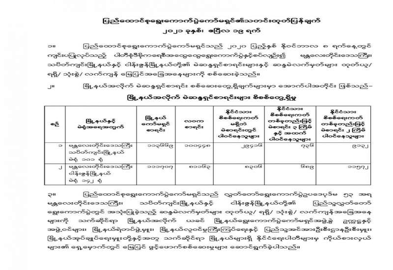 မန္တလေးတိုင်းဒေသကြီး၊ မိတ္ထီလာခရိုင်၊ သာစည်မြို့နယ်ဆေးရုံ၊ ဟံဇားတိုက်နယ် ဆေးရုံ၊ ယင်းမာပင် တိုက်နယ်ဆေးရုံ၊ ညောင်ရမ်းတိုက်နယ်ဆေးရုံ၊ ဝမ်းတွင်းမြို့နယ်၊ ပင်းတလဲတိုက်နယ်ဆေးရုံ၊ သပိတ်ကျင်းမြို့နယ်၊ တကောင်းတိုက်နယ်ဆေးရုံ၊ မတ္တရာ ပြည်သူ့ဆေးရုံ၊ ကျောက်ဆည်မြို့နယ်၊ စဉ့်ကိုင်ပြည်သူဆေးရုံ၊ ပျော်ဘွယ်မြို့နယ်၊ ယင်းတော်တိုက်နယ်ဆေးရုံ၊ မြစ်သားမြို့နယ် ပြည်သူ့ ဆေးရုံ၊ ကူမဲတိုက်နယ်ဆေးရုံ၊ တောင်သာမြို့နယ်၊ ဝဲလောင်တိုက်နယ်ဆေးရုံ၊ ကျောက်ပန်းတောင်း မြို့နယ် ပြည်သူ့ ဆေးရုံ၊ ပဲခူးတိုင်းဒေသကြီး၊ ကျောက်တံခါးမြို့နယ် ပြည်သူ့ဆေးရုံ၊ သာယာဝတီခရိုင် ပြည်သူ့ဆေးရုံ၊ ရွှေကျင်မြို့နယ်၊ ဒုံဇရစ်ကျေးရွာ တိုက်နယ်ဆေးရုံနှင့် လက်ပံတန်း မြို့နယ် ပြည်သူ့ဆေးရုံတို့ရှိ ဝန်ထမ်းများနှင့် လူနာရှင်များက အကူအညီတောင်းခံ မှုကြောင့် တပ်မတော်မှ ဆေးကုသရေးအဖွဲ့များအား စေလွှတ်၍ ရောဂါဝေဒနာခံစား နေရသည့် ဒေသခံပြည်သူများကို လိုအပ်သည့်ကျန်းမာရေး စောင့်ရှောက်မှုလုပ်ငန်း များ ဆောင်ရွက်ပေးလျက်ရှိရာ ယနေ့တွင်လည်း ခွဲစိတ်ကုသမှုဆိုင်ရာရောဂါ၊ သွားနှင့်ခံတွင်းရောဂါ၊ အရိုးအကြောရောဂါ၊ အစာအိမ်ရောဂါ၊ မျက်စိရောဂါ၊ နား၊နှာခေါင်း၊လည်ချောင်းရောဂါ၊ သားဖွားမီးယပ်ရောဂါ၊ သွေးတိုးရောဂါ၊ နှလုံးရောဂါ၊ အထွေထွေရောဂါတို့နှင့်ပတ်သက်၍ လိုအပ်သည့် ကျန်းမာရေး စစ်ဆေးကုသပေးခြင်းများကို ဆက်လက်ဆောင်ရွက်ပေးပြီး ခွဲစိတ်ကုသရန်လိုအပ် သော လူနာများအားခွဲစိတ်ကုသပေးခြင်းများ ဆောင်ရွက်ပေးခဲ့သည်။