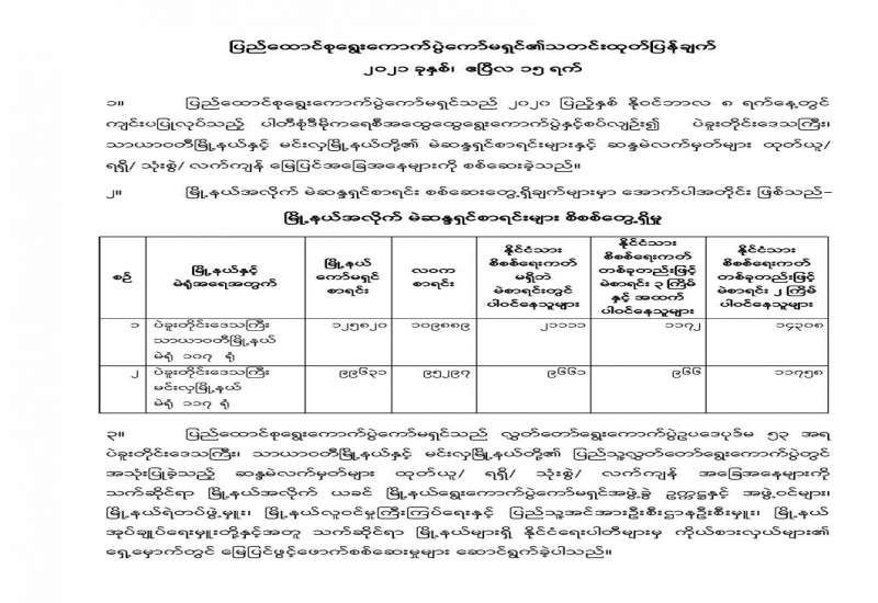 တိုင်းဒေသကြီးနှင့် ပြည်နယ်များရှိ တိုင်းရင်းသား ပြည်သူများအတွက် တပ်မတော်ဆေးရုံများနှင့် ယာယီ ကုသရေး ဆေးရုံများတွင် ကျန်းမာရေး စောင့်ရှောက်မှုများကို ဆောင်ရွက်ပေးလျက်ရှိရာ ဖေဖော်ဝါရီ ၅ရက်မှ ယနေ့ အထိ ပြင်ပလူနာ ၁၃၉၈၉၇ ဦး၊ အတွင်းလူနာ ၄၀၆၆ ဦးကို ကုသပေးနိုင်ခဲ့ပြီး ၎င်းလူနာများအနက် အကြီးစား ခွဲစိတ်ကုသရန် လိုအပ်သူ ၆၆၀၀၊ အသေးစားခွဲစိတ်ကုသရန် လိုအပ်သူ ၃၄၃၅ စုစုပေါင်း ၁ဝဝ၃၅ ဦးတို့ကို ခွဲစိတ်ကုသပေးနိုင်ခဲ့သည့်အပြင် စိုးရိမ်ဖွယ်ရာရှိသည့် | လူနာများကိုလည်း ပါရဂူများ၊ ဆေးမှူးများဖြင့် အထူးကြပ်မတ်ကုသပေးလျက်ရှိသည်။ ၎င်းအပြင် ကလေးမီးဖွားလူနာ ၃၄၇၄ ဦးကို ခွဲစိတ်မွေးဖွားပေး နိုင်ခဲ့ကာ ၅၂၆၈ ဦးကို သာမန်မွေးဖွားပေးနိုင်ခဲ့ခြင်း ကြောင့် ယနေ့အထိ ကလေးငယ် ၈၇၄၂ ဦးကို အောင်မြင်စွာ မွေးဖွား ပေးနိုင် ခဲ့သည်။
