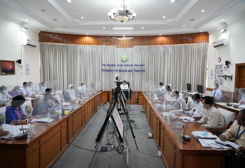 ဟိုတယ်နှင့်ခရီးသွားလာရေးဝန်ကြီးဌာန ပြည်ထောင်စုဝန်ကြီး ဦးမောင်မောင်အုန်း သည် နေပြည်တော်ရှိ ဟိုတယ်နှင့်ခရီးသွားလာရေးဝန်ကြီးဌာန အရာထမ်းများနှင့် တွေ့ဆုံညှိ နှိုင်းအစည်းအဝေးကို ယနေ့နံနက်ပိုင်းတွင် ဝန်ကြီးဌာနရှိ နီလာအစည်းအဝေးခန်းမ၌ ကျင်းပသည်။