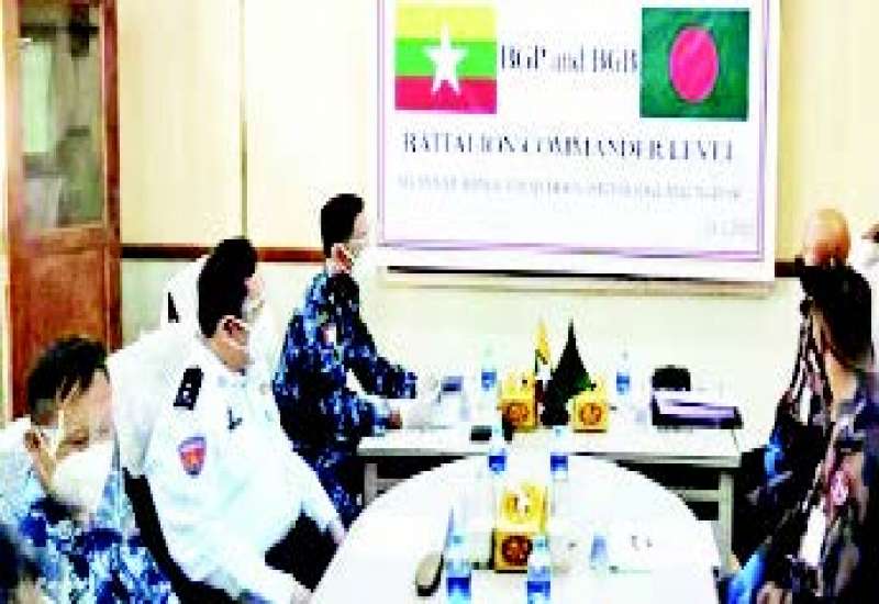 မြန်မာ-ဘင်္ဂလားဒေ့ရှ် နှစ်နိုင်ငံ နယ်ခြားစောင့်တပ်ဖွဲ့များအကြား တပ်ရင်းမှူးအဆင့် အလံတင် အစည်းအဝေးကို ယနေ့နံနက် ၁၀ နာရီတွင် မြန်မာနိုင်ငံ၊ မောင်တောမြို့၊ အမှတ် (၁) လူဝင်/ ထွက်စစ်ဆေးရေးစခန်း (POE) ၌ ကျင်းပသည်။
