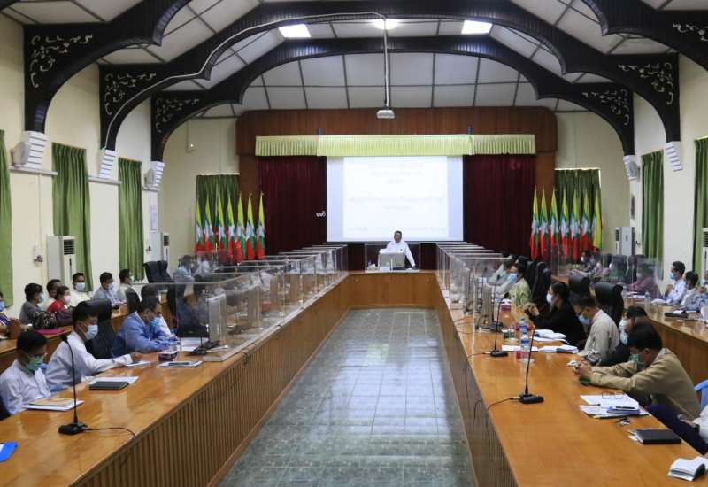 ရှမ်းပြည်နယ် တည်ဆောက်ရေးလုပ်ငန်းစိစစ်ရေး ကော်မတီ၏ လုပ်ငန်းဆောင်ရွက်မှု ရှင်းလင်းတင်ပြ ချက်နှင့် လမ်းဦးစီးဌာန၏ လုပ်ငန်းဆောင်ရွက်မှု တင်ပြခြင်းကို ယနေ့ မွန်းလွဲ ၂နာရီက တောင်ကြီးမြို့၊ ရှမ်းပြည်နယ် စီမံအုပ်ချုပ်ရေးကောင်စီရုံး၌ ကျင်းပ သည်။