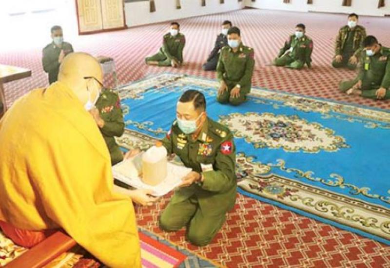 ကချင်ပြည်နယ် မြစ်ကြီးနားမြို့ရှိ ကျောင်းထိုင်ဘုန်းကြီး သင်တန်း ကျောင်း၊ အောင်ဇေရန်အောင်တပ်ဦး ကျောင်းနှင့် တောင်တန်းသာသနာပြု ကျောင်းတိုက်များသို့ ဖေဖော်ဝါရီ ၁၅ ရက်နှင့် ယနေ့တို့တွင် ကာကွယ်ရေး ဦးစီးချုပ်ရုံး (ကြည်း)မှ ဒုတိယ ဗိုလ်ချုပ်ကြီး တေဇကျော်၊ မြောက်ပိုင်း တိုင်းစစ်ဌာနချုပ်တိုင်းမှူး ဗိုလ်မှူးချုပ် မြတ်သက်ဦးနှင့် အဖွဲ့ဝင်များက သွားရောက်၍ ကျောင်းထိုင်ဆရာတော် များအား ဖူးမြော်သည်။ ။