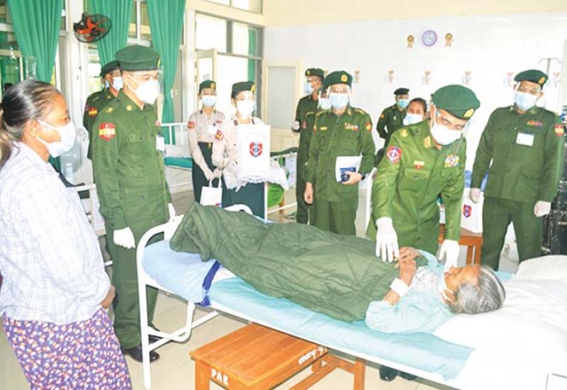 တိုင်းဒေသကြီးနှင့် ပြည်နယ်များရှိ တိုင်းရင်းသားပြည်သူများ၏ ကျန်းမာ ရေးဆိုင်ရာ ကုသပေးရန် အခက်အခဲ များ ဖြစ်ပေါ်မှုများကို တစ်ထောင့် တစ်နေရာမှ အထောက်အကူပြု စေရန်အတွက် မြို့နယ်အသီးသီးရှိ တပ်မတော်ဆေးရုံများ၌ ယာယီကုသ ရေး ဆေးရုံများဖွင့်လှစ်၍ တပ်မတော် မှ ပါရဂူများ၊ ဆေးမှူးများနှင့် သူနာပြု များဖြင့် စုဖွဲ့ ထားရှိကာ ကျန်းမာရေး စောင့်ရှောက်မှုများ ဆောင်ရွက်ပေး လျက်ရှိသည်။