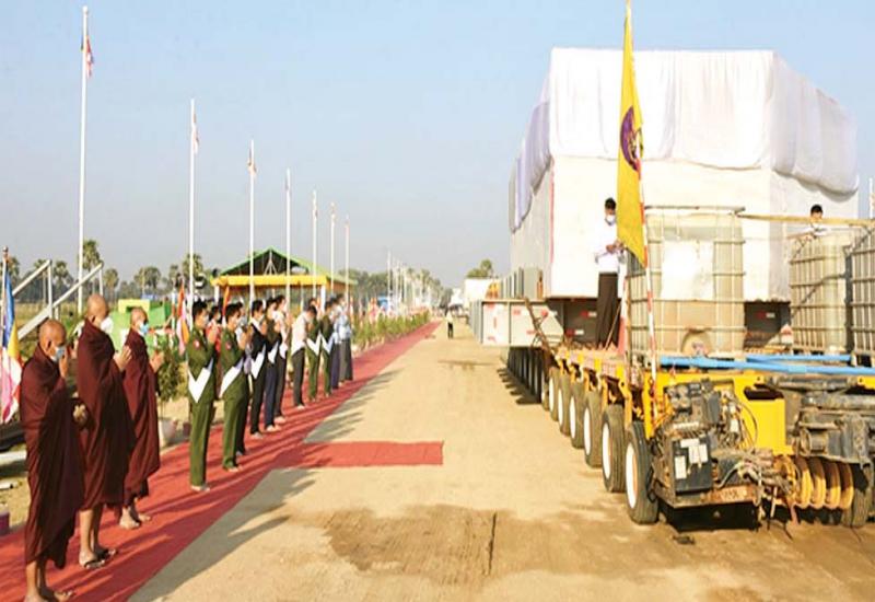 နေပြည်တော်တွင် တည်ထားကိုးကွယ်မည့် ဘူမိဖဿမုဒြာ ထိုင်တော်မူကျောက်ဆစ် ဗုဒ္ဓရုပ်ပွားတော်မြတ်ကြီး၏ ဆင်းတုတော်နှင့် ပလ္လင်တော် အစိတ်အပိုင်းများကို Modular Trailer ဖြင့် ဆီမီးခုံဆိပ်ကမ်းမှ တည်ထား ကိုးကွယ်မည့် နေပြည်တော်ကောင်စီနယ်မြေသို့ ဒုတိယ အကြိမ် ပင့်ဆောင်ပူဇော်ခြင်း မဟာမင်္ဂလာ အခမ်းအနားကို ယနေ့မွန်းလွဲပိုင်းတွင် မန္တလေးတိုင်းဒေသကြီး ငါန်းဇွန် မြို့နယ် ဆီမီးခုံကျေးရွာ အနီး၌ ကျင်းပသည်။