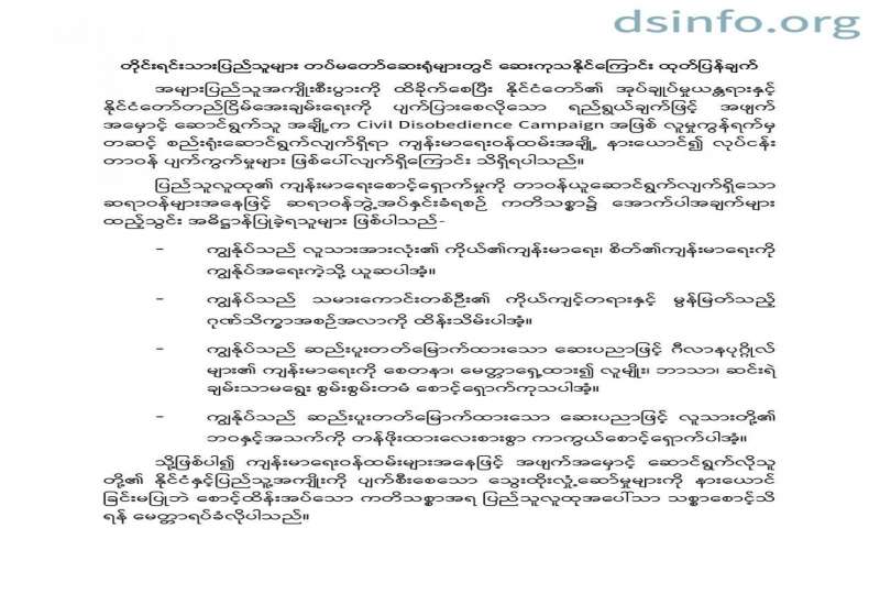 တပ်မတော်သတင်းမှန်ပြန်ကြားရေးအဖွဲ့က တိုင်းရင်းသားပြည်သူများ တပ်မတော် ဆေးရုံများတွင် ဆေးသကုနိုင်ကြောင်း ထုတ်ပြန်ချက် တစ်ရပ်ကို ယနေ့ရက်စွဲဖြင့် ထုတ်ပြန်လိုက်ကြောင်း သိရသည်။